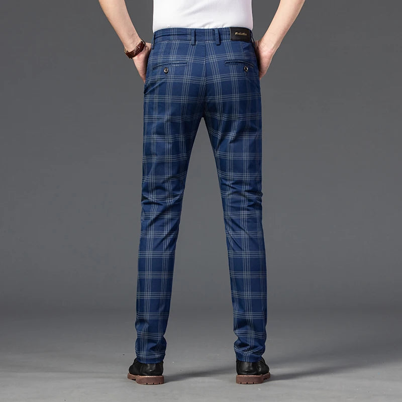 These plaid trousers are designed to not only look sharp but also feel incredible. The tailored fit and flexible fabric move with you, crafting a silhouette that’s as flattering as it is freeing. This ensures you look as good as you feel, from the office to after-hours.
