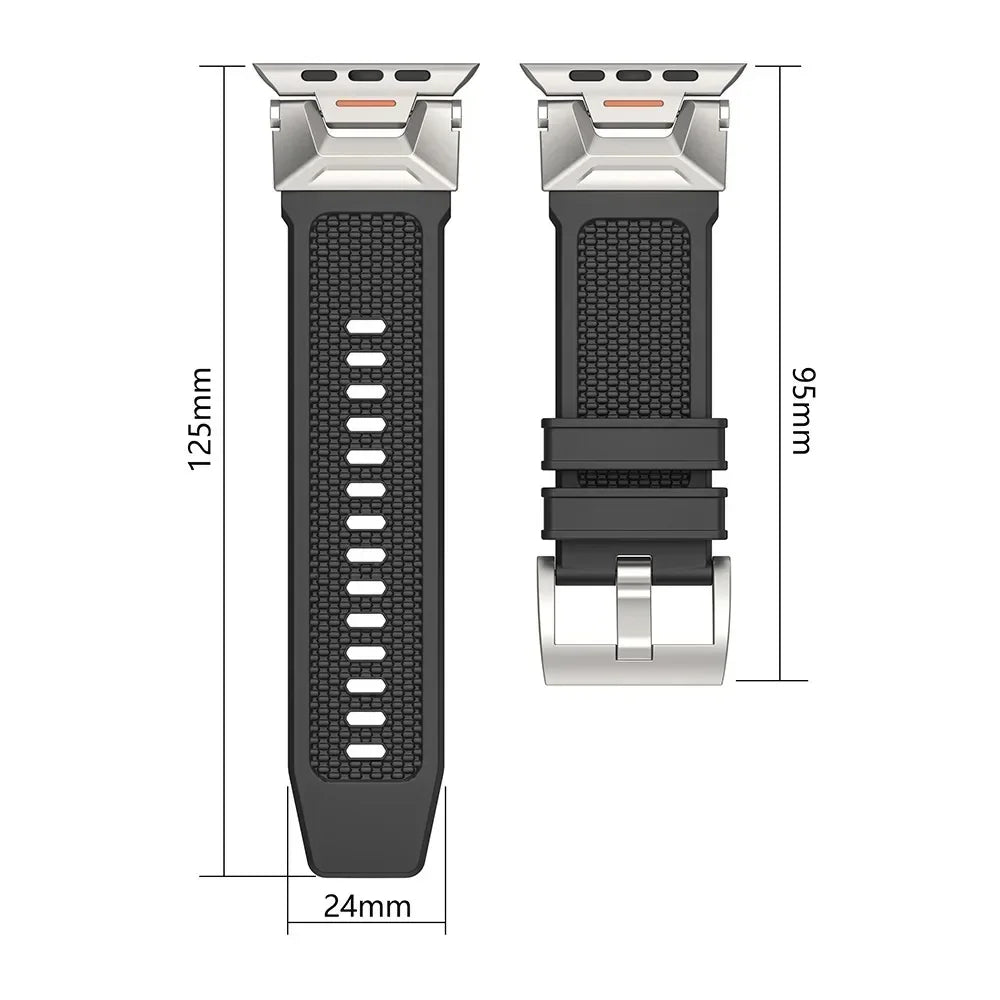 Refine your look with this Apple Watch Band, the ultimate upgrade that brings together a premium silicone band with mecha lugs. Once it's on, you'll love it so much that you won't want to take it off.