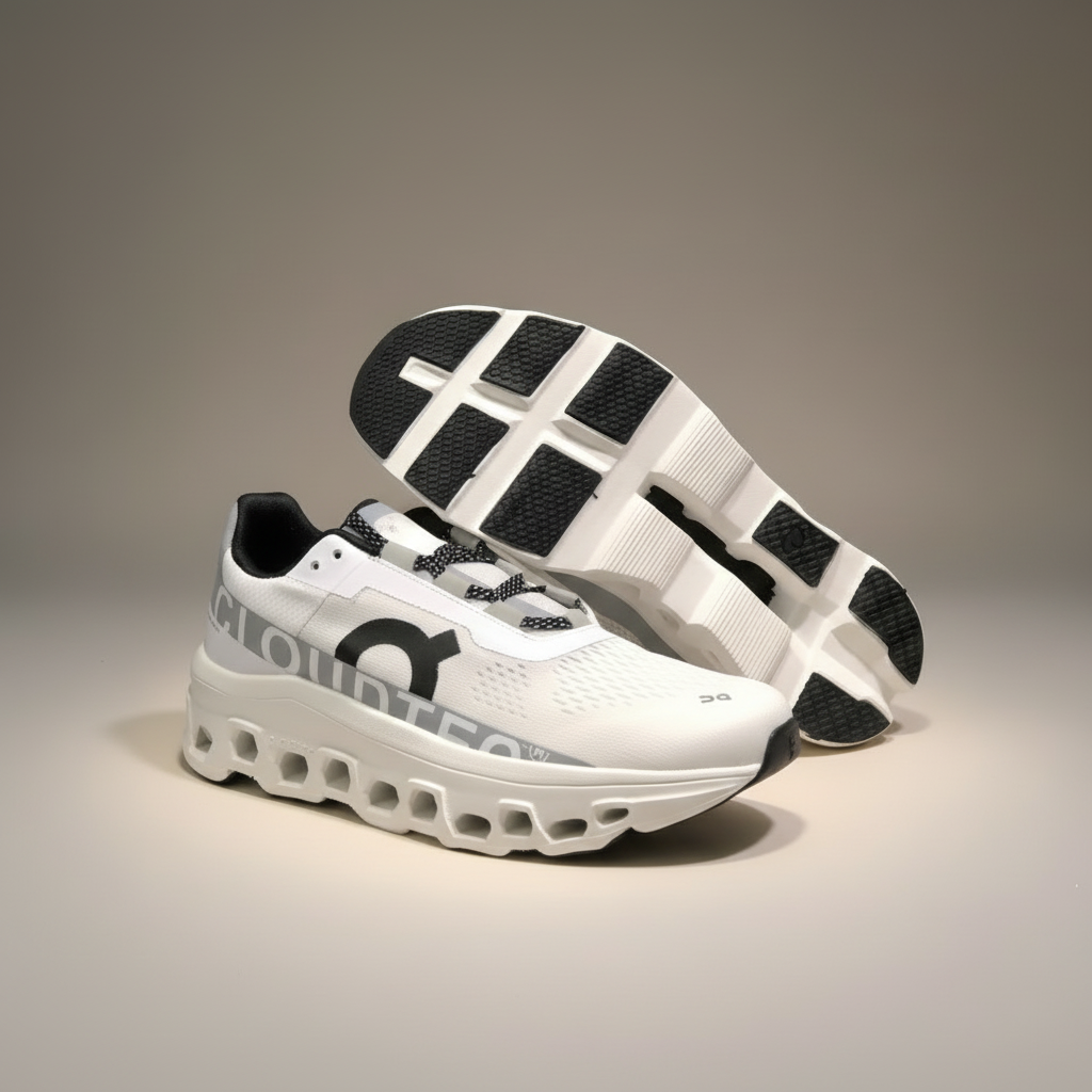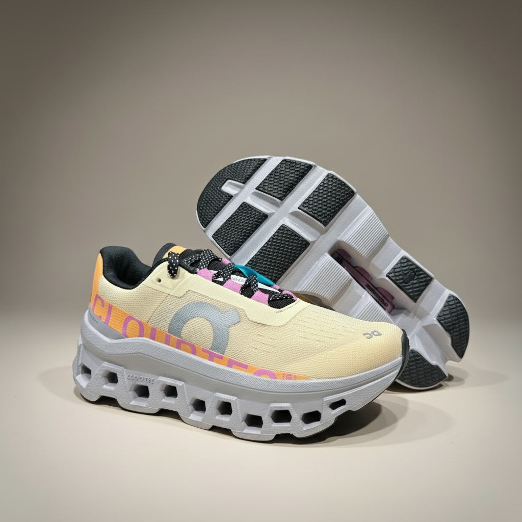 Built with a soft mesh upper and a max-cushioned foam sole, this pair delivers noticeable spring and rebound while keeping each step light at just 275g. A forward-rolling sole shape works with the responsive plate inside to absorb impact on landing and drive smooth momentum with every stride.