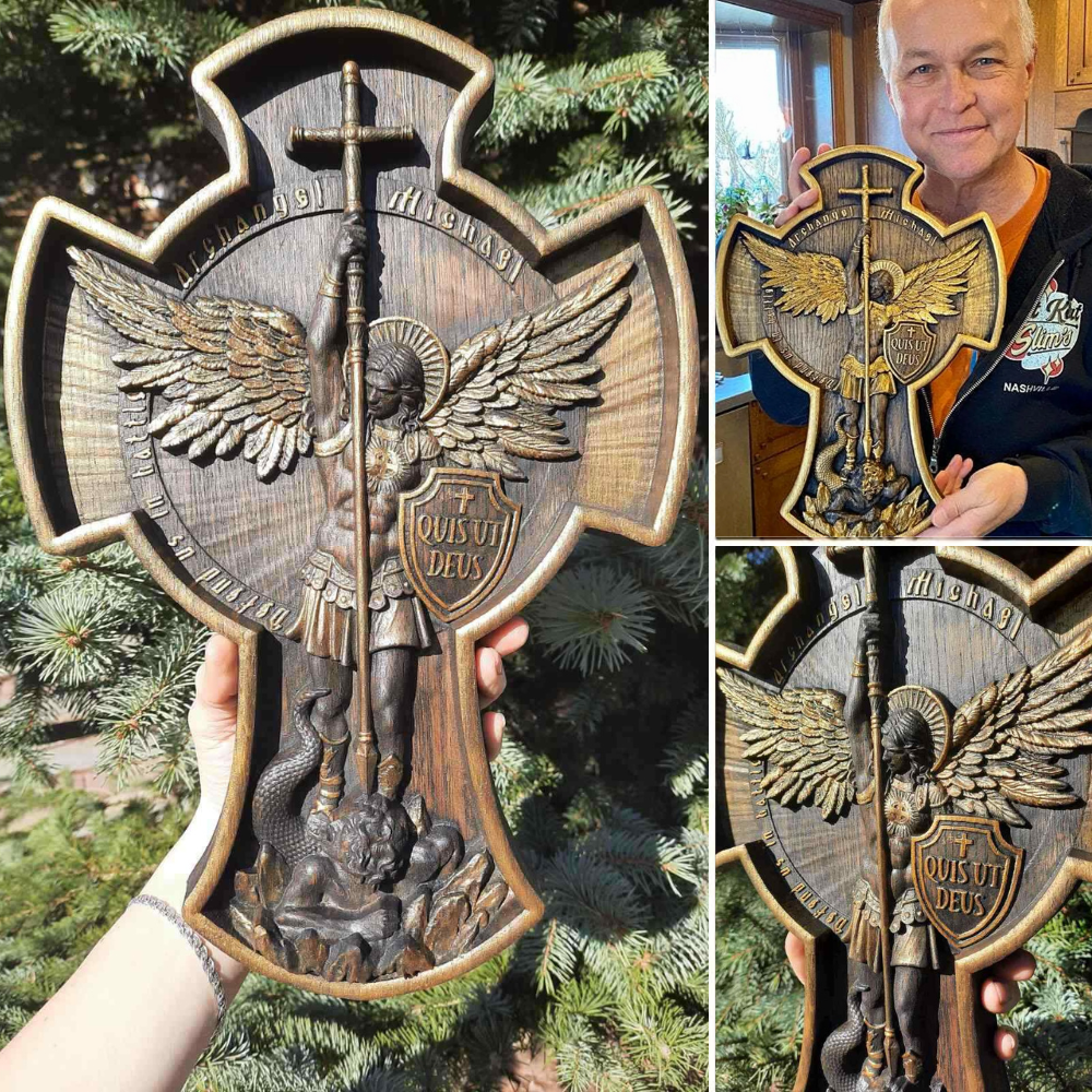 Embrace the warmth and comfort of Archangel Michael's embrace. Handcrafted with love and devotion, it serves as a reminder of divine protection and unwavering faith. Let the angelic presence fill your heart.