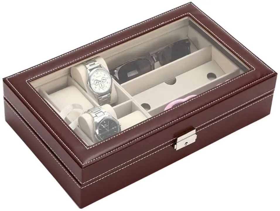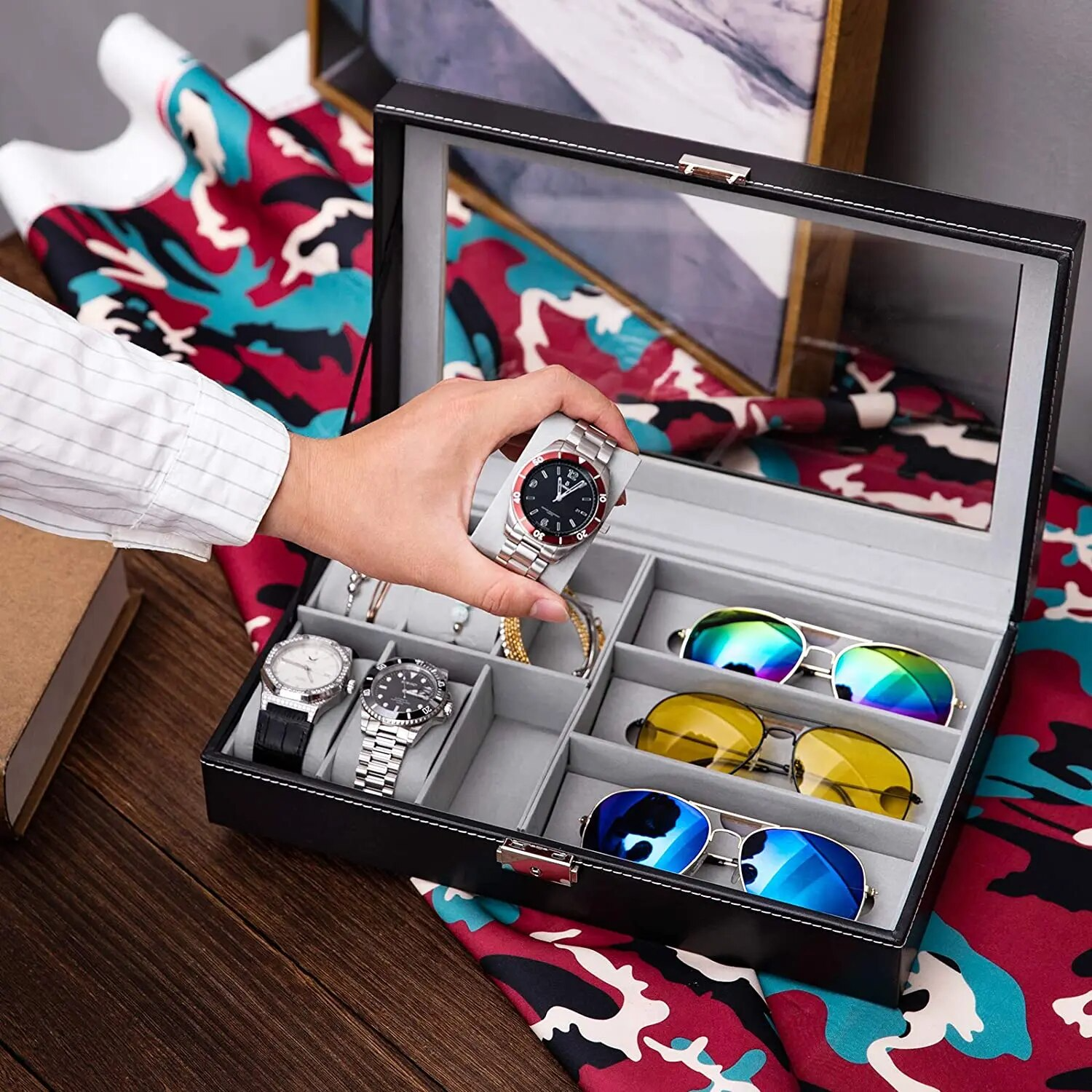 • Dual-purpose organizer: 6 watch slots, 3 sunglasses compartments
