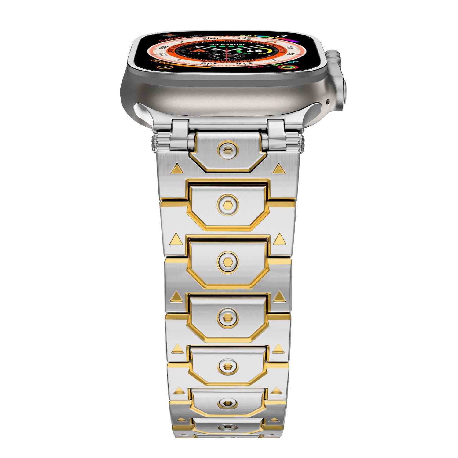Refine your look with this Apple Watch Band, the ultimate upgrade that brings together a geometric band with a sturdy stainless steel clasp. It’s an everyday essential that promises to elevate your Apple Watch to luxury status.