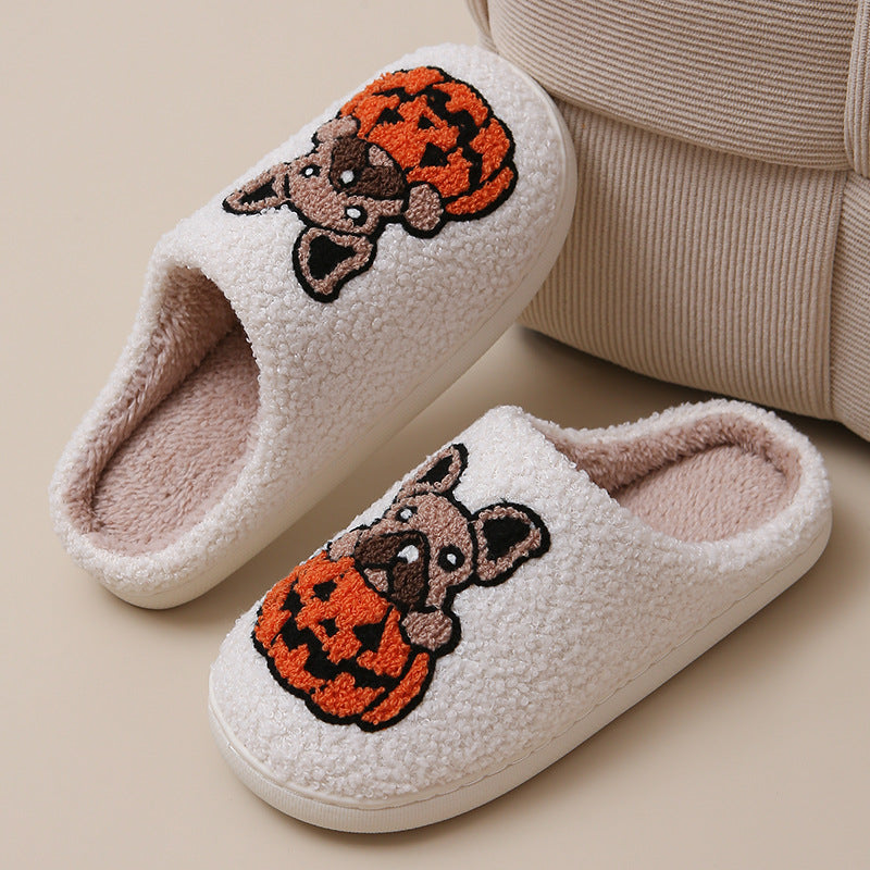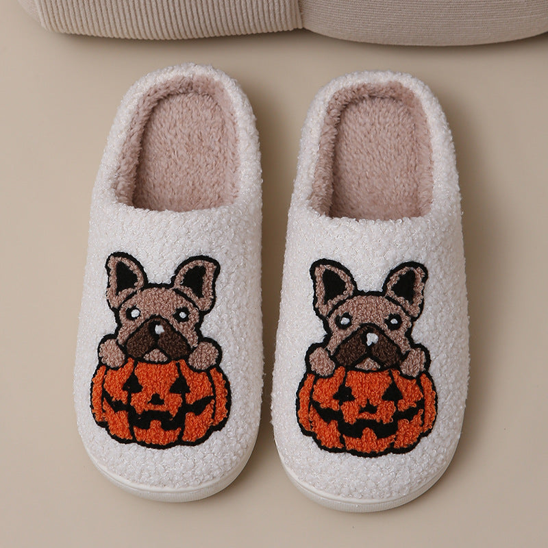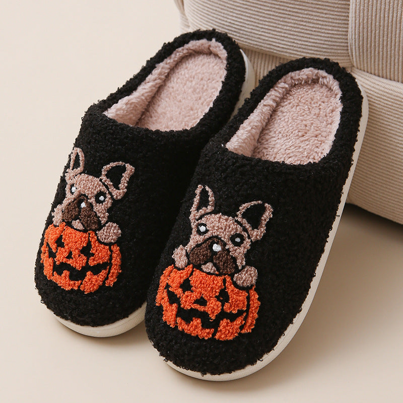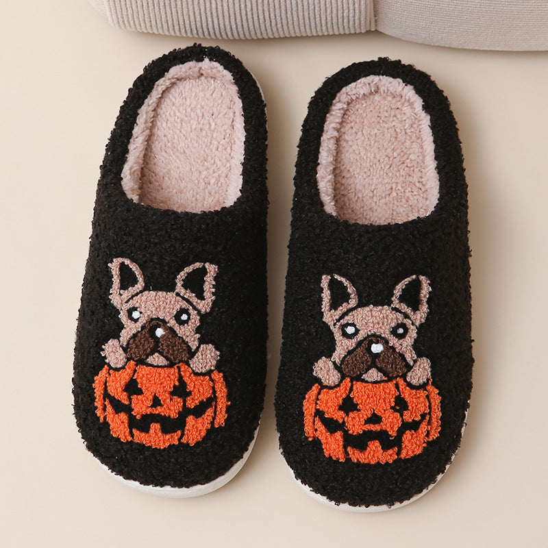 Step into the spooky season with our Jack-O'-Paws Slippers! These plush slippers, featuring a cute Frenchie and pumpkin design, are perfect for keeping your feet warm and toasty during chilly autumn nights.