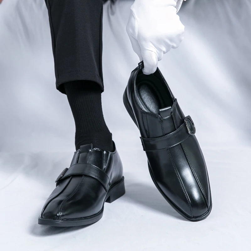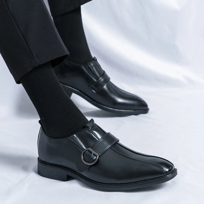 Crafted from genuine leather, these dress shoes feature a sleek pointed toe and a polished metal buckle for a sophisticated look. The soft sole ensures every step is taken in supreme comfort, perfect for any setting from office floors to social evenings.