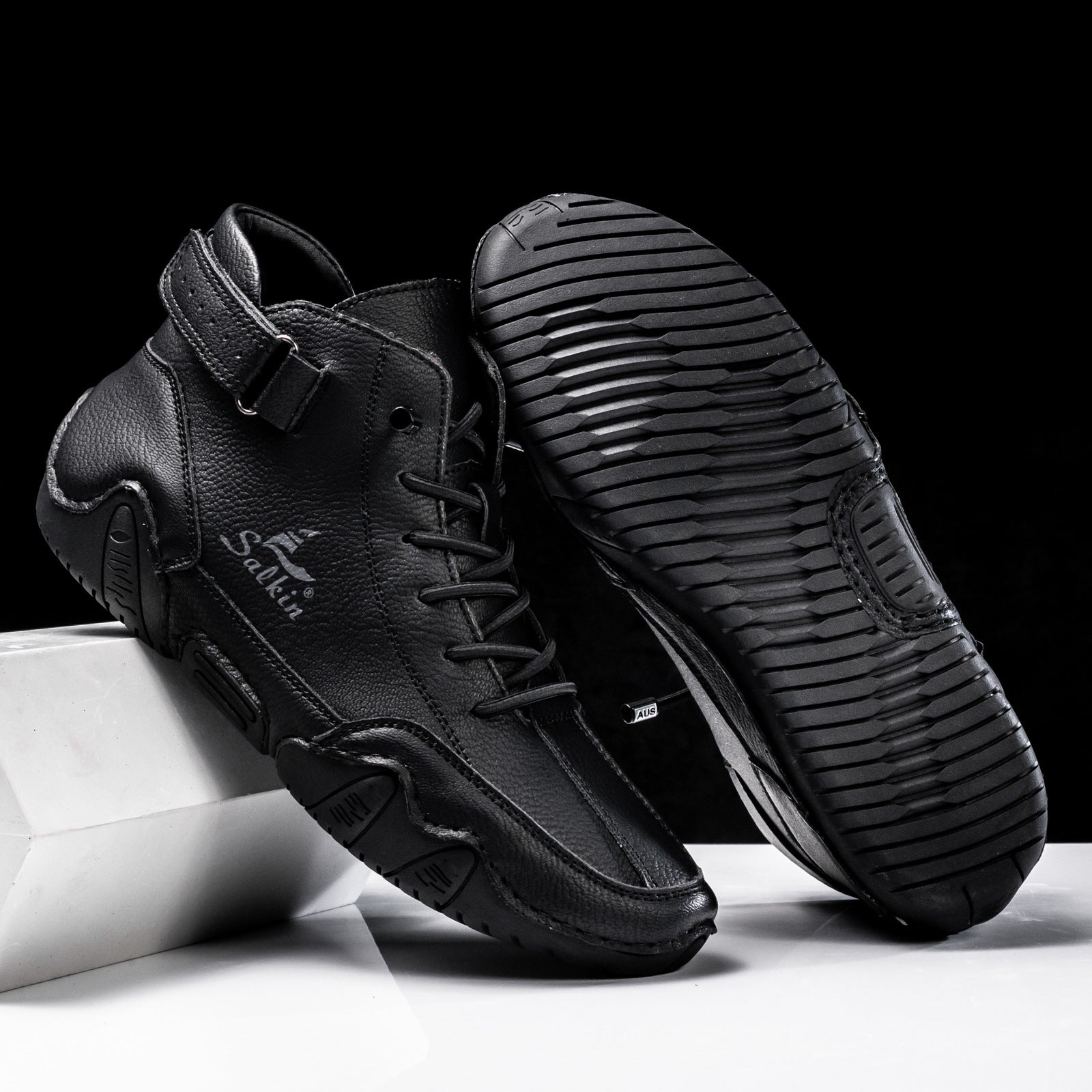 These rugged boots combine handcrafted stitching with a curved sole design, perfect for adventurers who seek both style and grip on various terrains. The mid-top design wraps your ankle in comfort while the distinctive outsole pattern provides superior traction, making these boots ready for both city streets and mountain paths.
