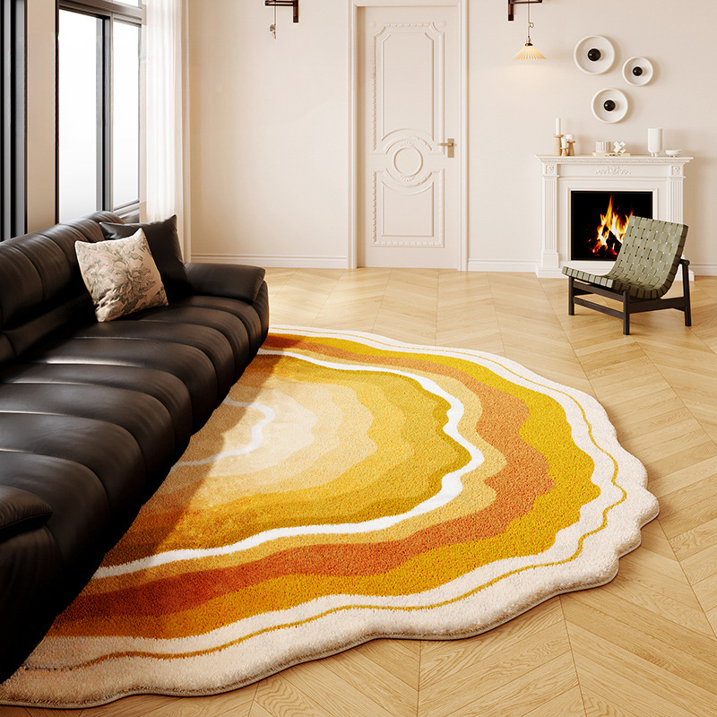 Crafted from high-density microfiber blend, this geode-inspired rug delivers plush comfort with a rich, vibrant design that soothes the senses. Its striking gradient hues and soft-touch texture evoke calm and serenity while making a bold statement in any room.
